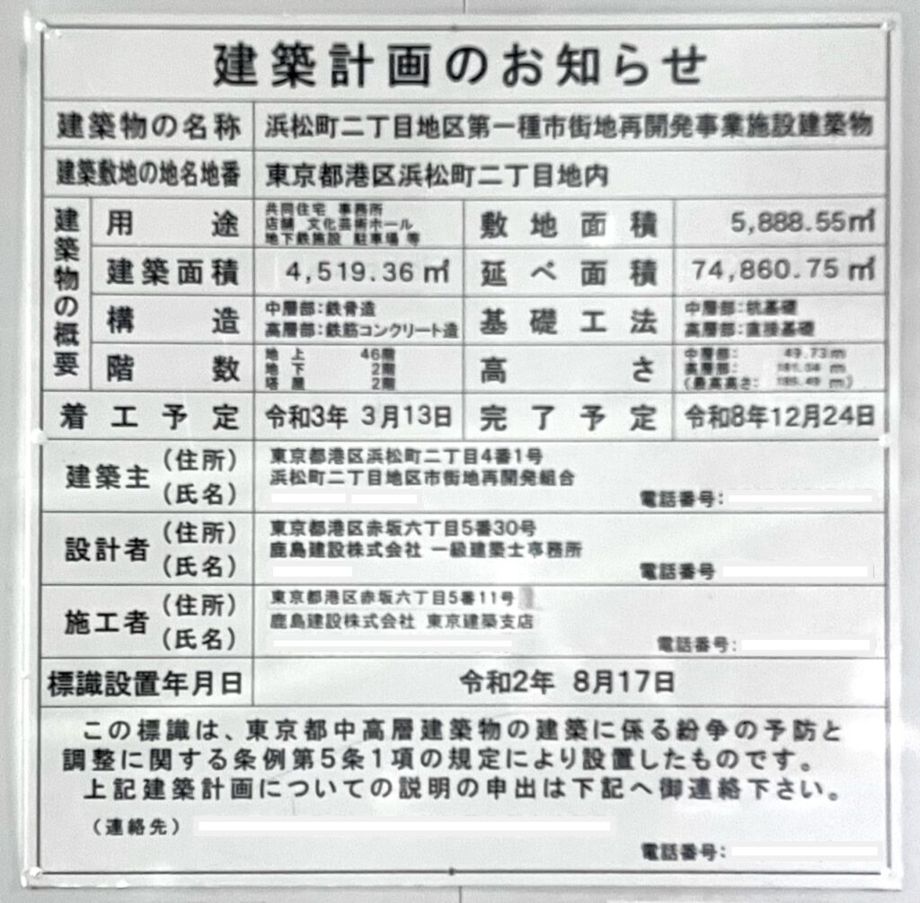建築敷地の地名地番:東京都港区浜松町二丁目地内